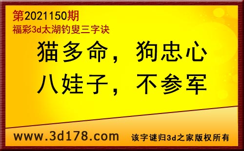 3d第21150期太湖字谜:猫多命,狗忠心,八娃子,不参军