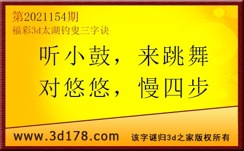 3d第21154期太湖字谜:听小鼓,来跳舞,对悠悠,慢四步