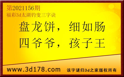 3d第21156期太湖字谜:盘龙饼,细如肠,四爷爷,孩子王