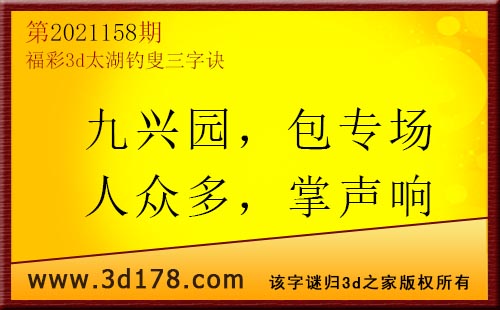 3d第21158期太湖字谜:九兴园,包专场,人众多,掌声响