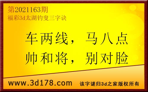3d第21163期太湖字谜:车两线,马八点,帅和将,别对脸