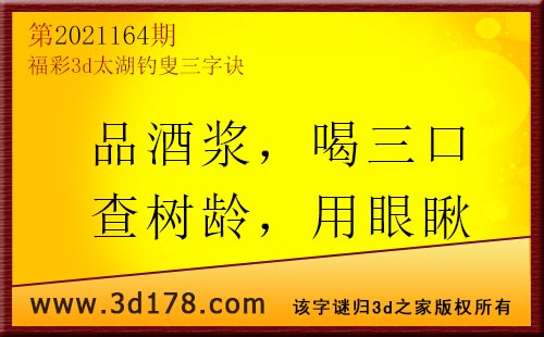 3d第21164期太湖字谜:品酒浆,喝三口,查树龄,用眼瞅