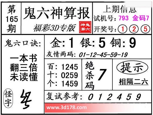 3d第21165期鬼六神算报为您推荐鬼六口诀: