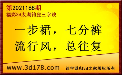 3d第21168期太湖字谜:一步裙,七分裤,流行风,总往复