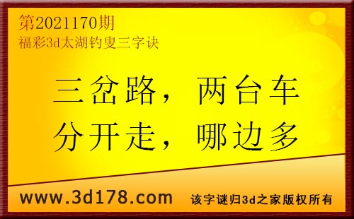 3d第21170期太湖字谜:三岔路,两台车,分开走,哪边多