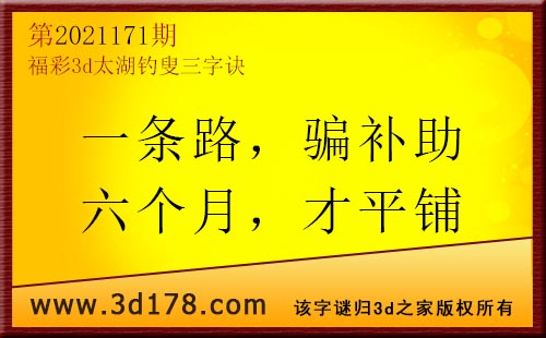 3d第21171期太湖字谜:一条路,骗补助,六个月,才平铺