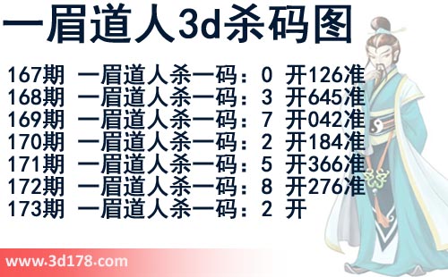 该一眉道人3d杀码图由3d之家3d图库频道原创,仅供彩民参考,温馨提供。
