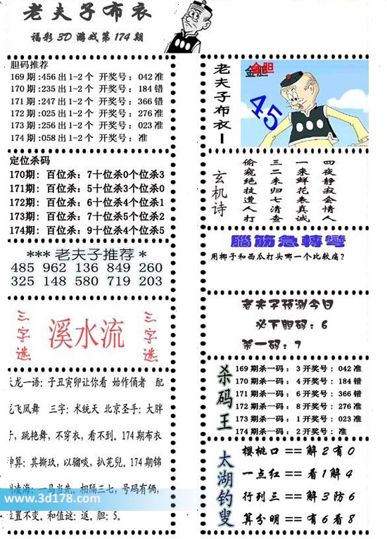 福彩3d第2021174期老夫子布衣图详情: