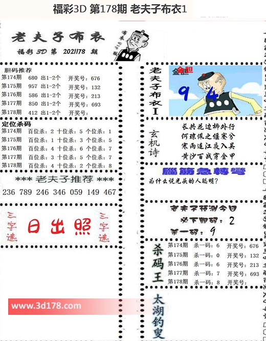 福彩3d第2021178期老夫子布衣图详情: