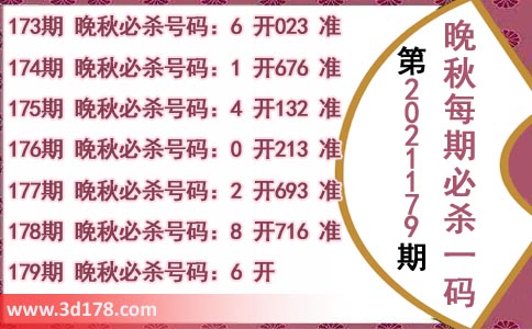 178期 晚秋必杀号码:8 开716 准