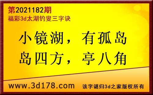 3d第21182期太湖字谜:小镜湖,有孤岛,岛四方,亭八角