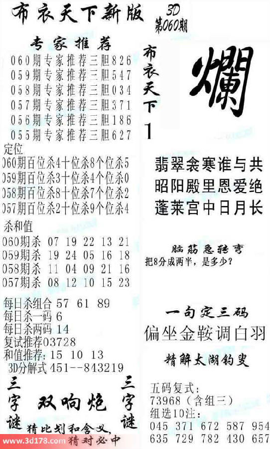 该布衣图库由福彩3D之家3D图库频道原创,仅供彩民参考,温馨提供。