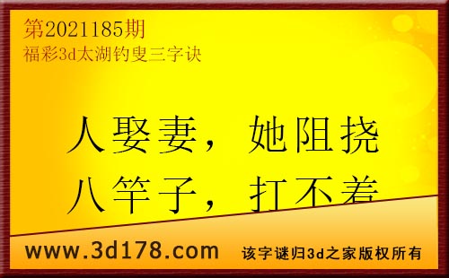 3d第21185期太湖字谜:人娶妻,她阻挠,八竿子,打不着