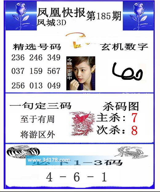 福彩3d凤凰快报图第21185期精选号码推荐: