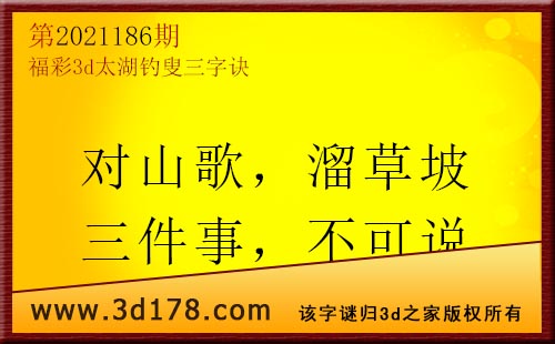 3d第21186期太湖字谜:对山歌,溜草坡,三件事,不可说
