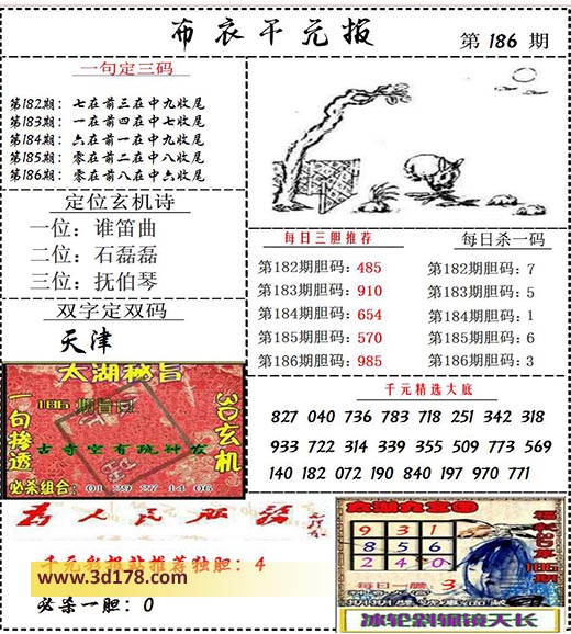 福彩3d布衣图库布衣千元报第2021186期定位玄机诗: