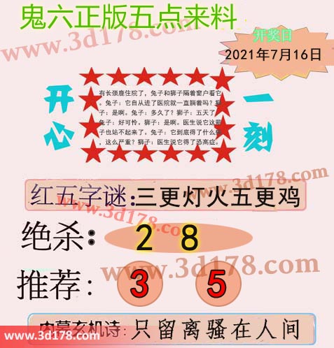 福彩3d第2021187期鬼六五点来料: