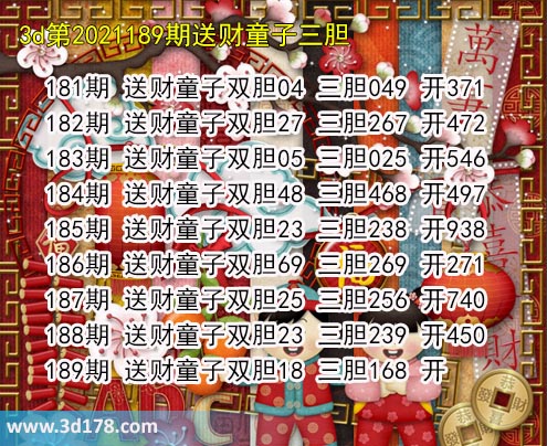 下面我们一起来回顾一下3d之家胆码图送财童子三胆近期推荐详情: