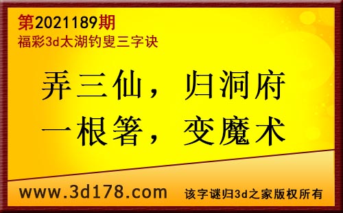 3d第2021189期太湖字谜:弄三仙,归洞府,一根箸,变魔术