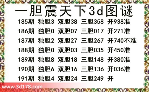 本期一胆震天下3d图谜: