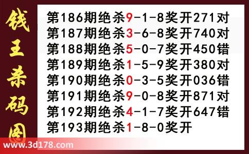 近期3d钱王杀码具体详情