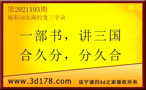 3d第2021193期太湖字谜:一部书,讲三国,合久分,分久合