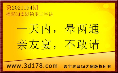 3d第2021194期太湖字谜:一天内,晕两通,亲友宴,不敢请