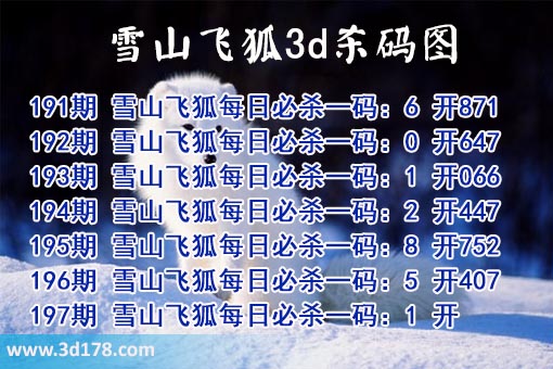 该雪山飞狐杀码图由3d之家3d图库频道原创,仅供彩民参考,温馨提供。