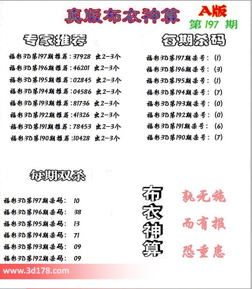 3d布衣神算第197期定位杀码: