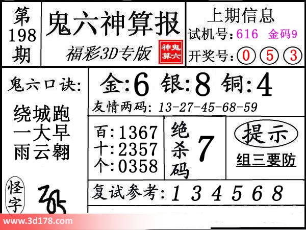 3d第2021198期鬼六神算报为您推荐鬼六口诀: