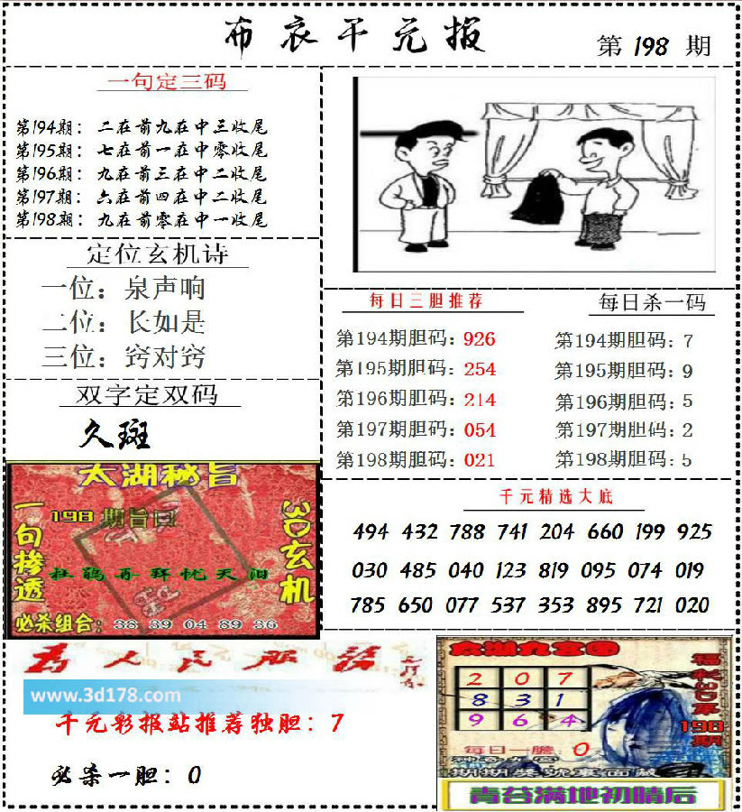 福彩3d布衣图库布衣千元报第2021198期定位玄机诗: