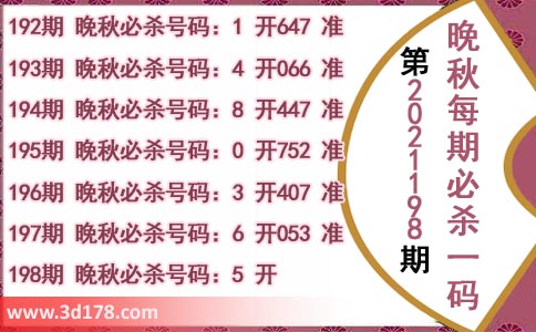196期 晚秋必杀号码:3 开407 准