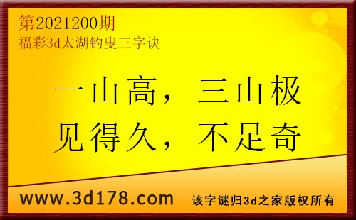 3d第2021200期太湖字谜:一山高,三山极,见得久,不足奇