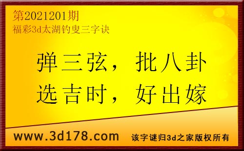3d第2021201期太湖字谜:弹三弦,批八卦,选吉时,好出嫁