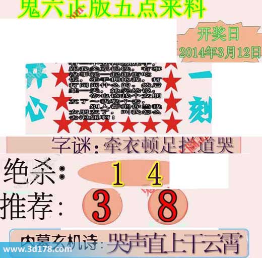 3d第2014063期鬼六五点来料: