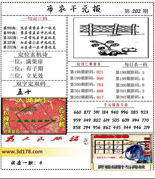 福彩3d布衣图库布衣千元报第2021202期定位玄机诗: