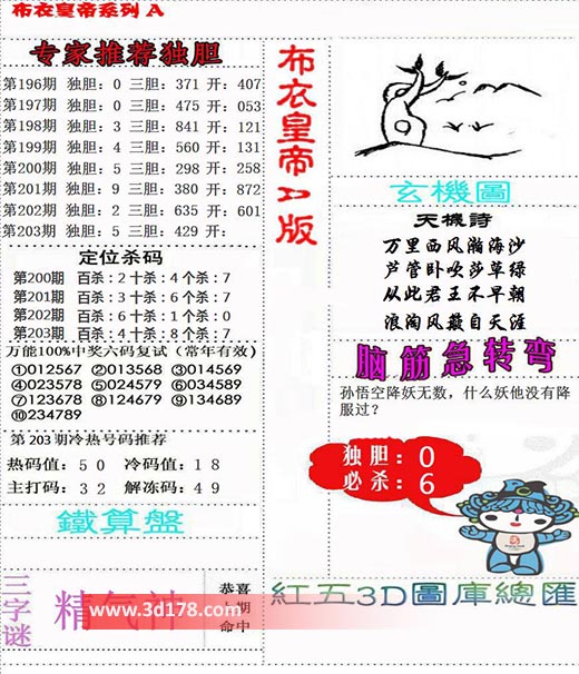 福彩3d第2021203期布衣皇帝A版布衣专家独家推荐: