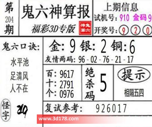 3d第2021204期鬼六神算报为您推荐鬼六口诀: