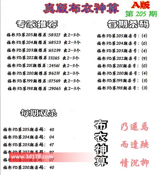 3d之家布衣图库之布衣神算图第2021205期详解: