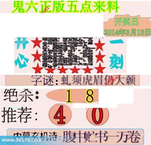3d第2014064期鬼六五点来料:
