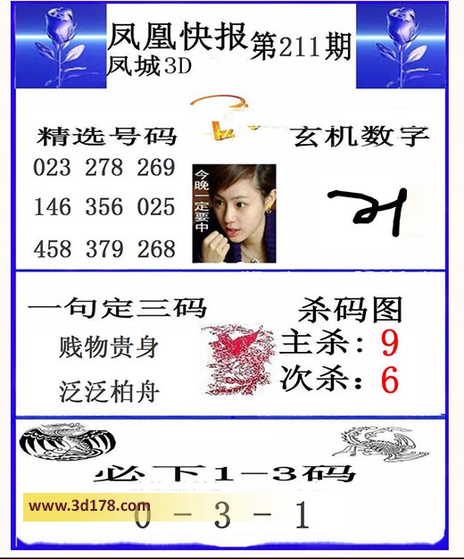 福彩3d凤凰快报图第2021211期精选号码推荐: