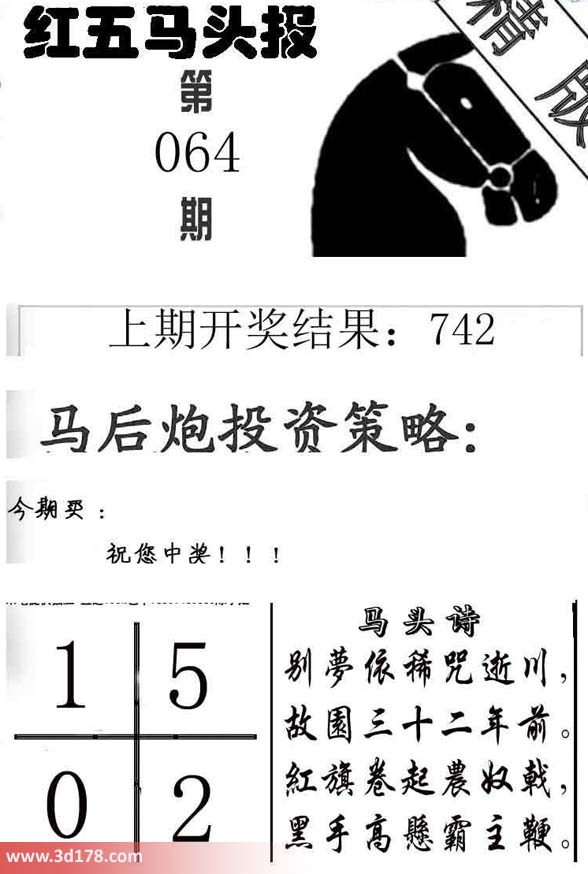 福彩3d第2014064期红五马头报详解: