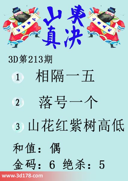 福彩3d第2021213期山东真诀图如下所示: