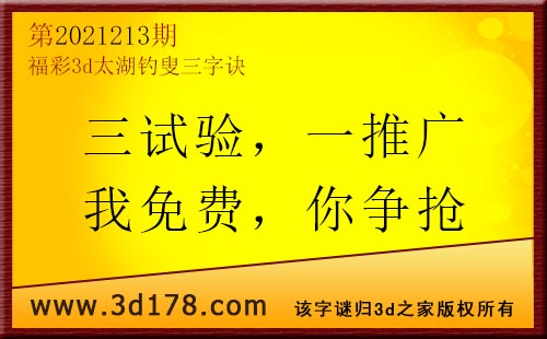 3d第21213期太湖字谜:三试验,一推广,我免费,你争抢