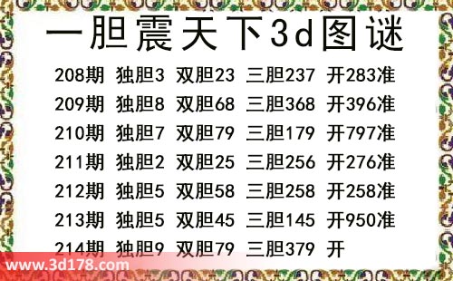 一胆震天下三胆图库由3d之家3d图库频道原创,仅供彩民参考,温馨提供。