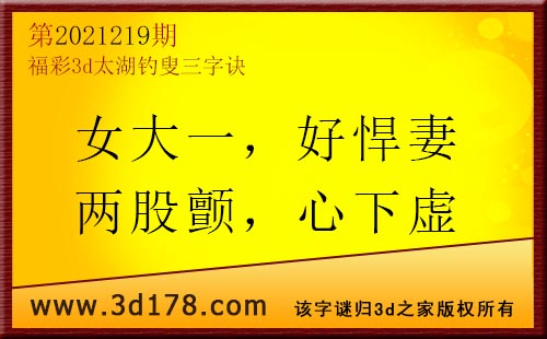 3d第21219期太湖字谜:女大一,好悍妻,两股颤,心下虚