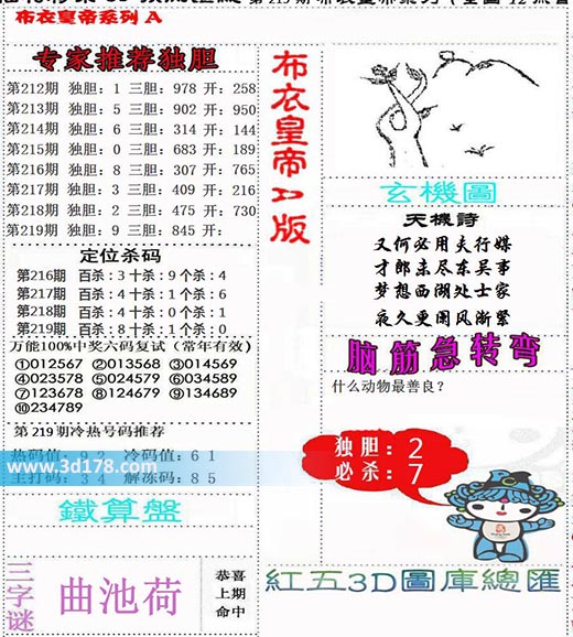 福彩3d第2021219期布衣皇帝A版布衣专家独家推荐: