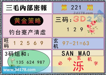 福彩3d第2021221期三毛内部密报综合推荐如下: