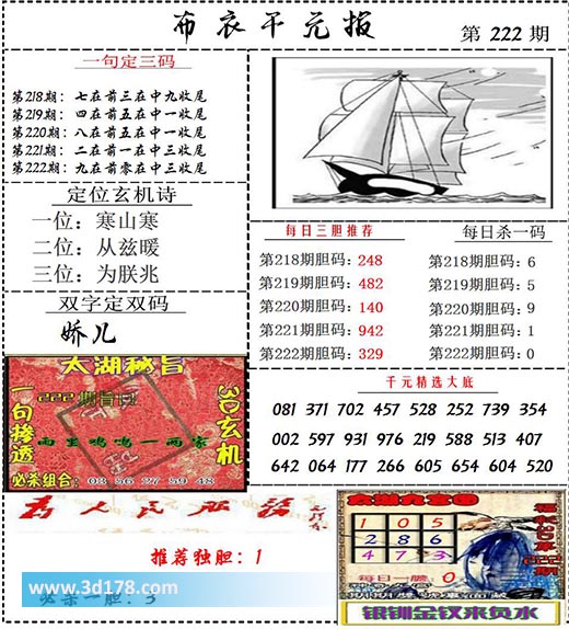 福彩3d布衣图库布衣千元报第2021222期定位玄机诗: