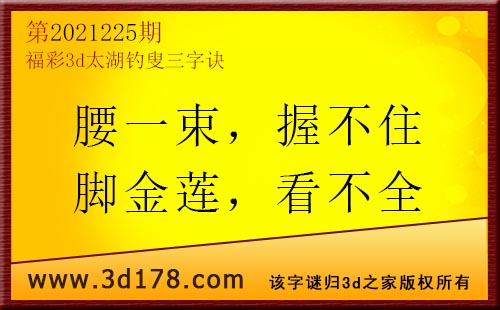 3d第21225期太湖字谜:腰一束,握不住,脚金莲,看不全